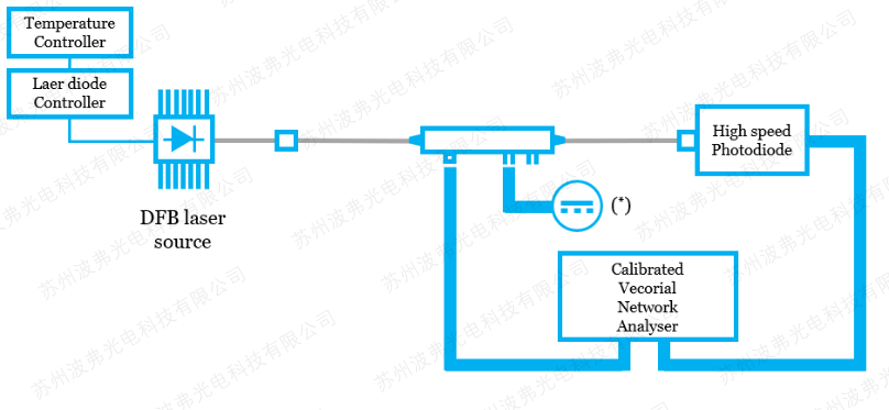 S11是电回损,定义为射频电信号从调制器RF端口反射会信号源的比例(dB表示)。S21定义为注入调制器射频端口的电信号-3dB高频截至带宽。调制器的RF射频端的高频效率通常由电回损和电光带宽决定,用高速仪器比如光电探测器和矢量网络分析仪可测量出这些参数。强度调制器需要设置在正确的直流偏压点,并且输入射频弱信号(S11一般0dBm数量级,S21一般-15dBm数量级),S11需要记录它在整个频率段的最大数值,S21测量时网络分析仪和高速光探测器需要被校准和去嵌,以确保测量出的电光带宽仅仅是调制器本身的。