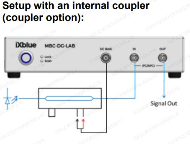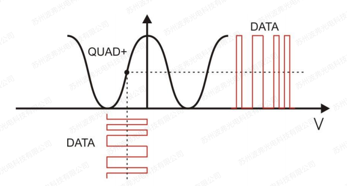 稳定的偏压控制方式,是前文所说的第一种方式,通过调制器外接耦合器来实现。iXblue 偏压控制器MBC-DG-LAB默认内置耦合器(一般1:99),其控制原理是在调制光信号中叠加一个低频率和低振幅的抖动信号(也称为导频信号),任何偏离工作点的情况都会产生谐波,可以通过测量结果的频率分析和特定算法进行信号处理。调制器工作点在QUAD+或QUAD-时,导频信号的二次谐波为零。当调制器工作点在Min或Max时,导频信号的一阶为零,因为MBC-DG-LAB可以锁定常规应用的4种工作点。另外,对于要求非常纯净的载波信号的模拟调制,iXblue同样提供无导频信号的MBC-AN-LAB。