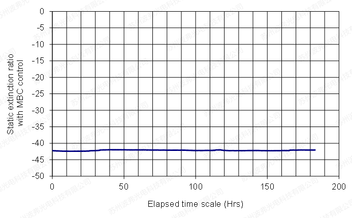 举例而言,对于高消光比调制器MXER系列,消光比(请参考微信文章常见电光调制器参数定义)是应用的最重要指标(请参考微信文章BOTDA光纤传感系统中电光调制器和光纤的选择)。由于偏压的漂移,消光比也就随之变差,因此长时间稳定的消光比必须通过偏压控制器MBC连实现。如下图,通过外置耦合器和偏压控制器可以实现>40dB长时间的消光比稳定性。如果使用调制器内部的PD作为监控方式而不用外部耦合器,仅能保证>30dB的消光比稳定性。