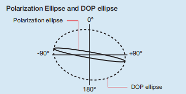 DOP椭圆越窄,入射偏振轴与光纤的其中一个偏振轴对齐越好。对于理想的对齐方式,椭圆将退化为直线。