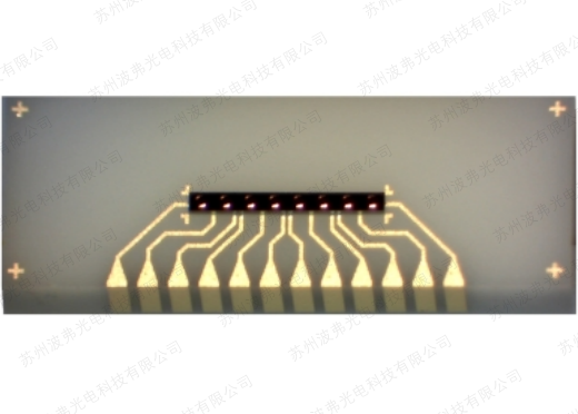 底部照明的8通道光电二极管阵列倒装焊接在具有环绕金属化的陶瓷底座上。 导线设计用于使用四对光电二极管进行平衡检测。