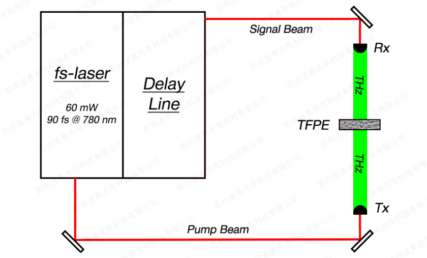 校准TDS系统过程以精确测量样品厚度是使用TFPE的一个例子。 实验装置如图1所示。1.