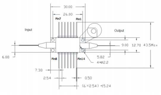 1550nm波段-15dBm饱和输出功率-25dB增益-蝶形封装-单模尾纤-FC/APC接头 |